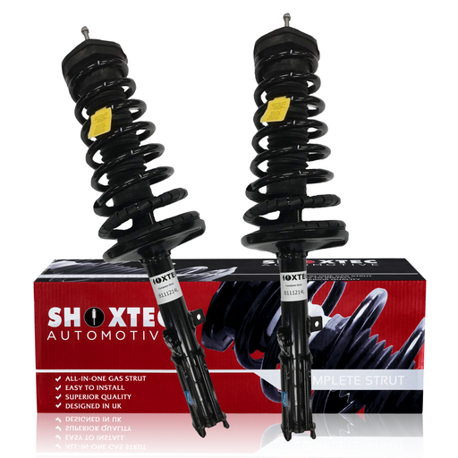 Shoxtec complete strut assemblies combine pre-assembled struts, coil springs, and strut mounts for streamlined suspension repairs and efficient, bolt-on installation. Designed as Direct Fit Replacement Strut Assemblies, they meet or exceed OEM factory standards, restoring original braking efficiency, vehicle stability, and factory-like ride comfort. Built for long-term durability and reliable performance, these complete strut assemblies enhance vehicle handling and ensure consistent performance on all terrains, from paved roads to off-road trails. For a comprehensive front and rear suspension solution, Shoxtec’s Complete Struts & Coil Spring Assemblies provide precision-engineered suspension components that simplify complex suspension upgrades, offering a restored factory-like ride experience and optimal vehicle safety for a wide range of cars, light trucks, and SUVs. Upgrade your vehicle's suspension with Shoxtec for a noticeable improvement in ride quality and enhanced driving confidence.