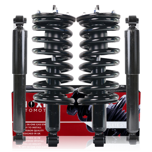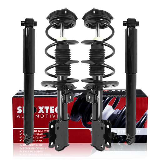 Shoxtec complete strut assemblies combine pre-assembled struts, coil springs, and strut mounts for streamlined suspension repairs and efficient, bolt-on installation. Designed as Direct Fit Replacement Strut Assemblies, they meet or exceed OEM factory standards, restoring original braking efficiency, vehicle stability, and factory-like ride comfort. Built for long-term durability and reliable performance, these complete strut assemblies enhance vehicle handling and ensure consistent performance on all terrains, from paved roads to off-road trails. For a comprehensive front and rear suspension solution, Shoxtec’s Complete Struts & Coil Spring Assemblies provide precision-engineered suspension components that simplify complex suspension upgrades, offering a restored factory-like ride experience and optimal vehicle safety for a wide range of cars, light trucks, and SUVs. Upgrade your vehicle's suspension with Shoxtec for a noticeable improvement in ride quality and enhanced driving confidence.
