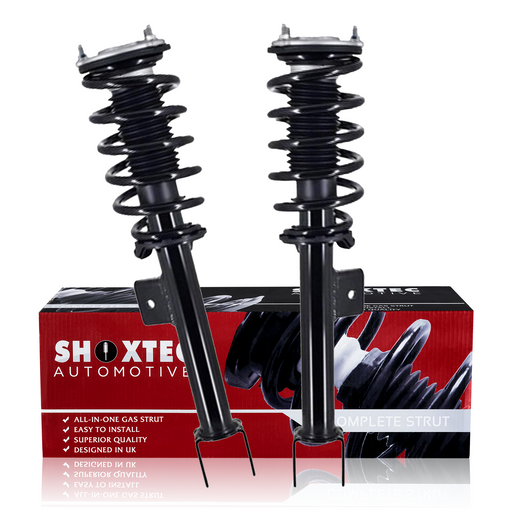 Shoxtec complete strut assemblies combine pre-assembled struts, coil springs, and strut mounts for streamlined suspension repairs and efficient, bolt-on installation. Designed as Direct Fit Replacement Strut Assemblies, they meet or exceed OEM factory standards, restoring original braking efficiency, vehicle stability, and factory-like ride comfort. Built for long-term durability and reliable performance, these complete strut assemblies enhance vehicle handling and ensure consistent performance on all terrains, from paved roads to off-road trails. For a comprehensive front and rear suspension solution, Shoxtec’s Complete Struts & Coil Spring Assemblies provide precision-engineered suspension components that simplify complex suspension upgrades, offering a restored factory-like ride experience and optimal vehicle safety for a wide range of cars, light trucks, and SUVs. Upgrade your vehicle's suspension with Shoxtec for a noticeable improvement in ride quality and enhanced driving confidence.