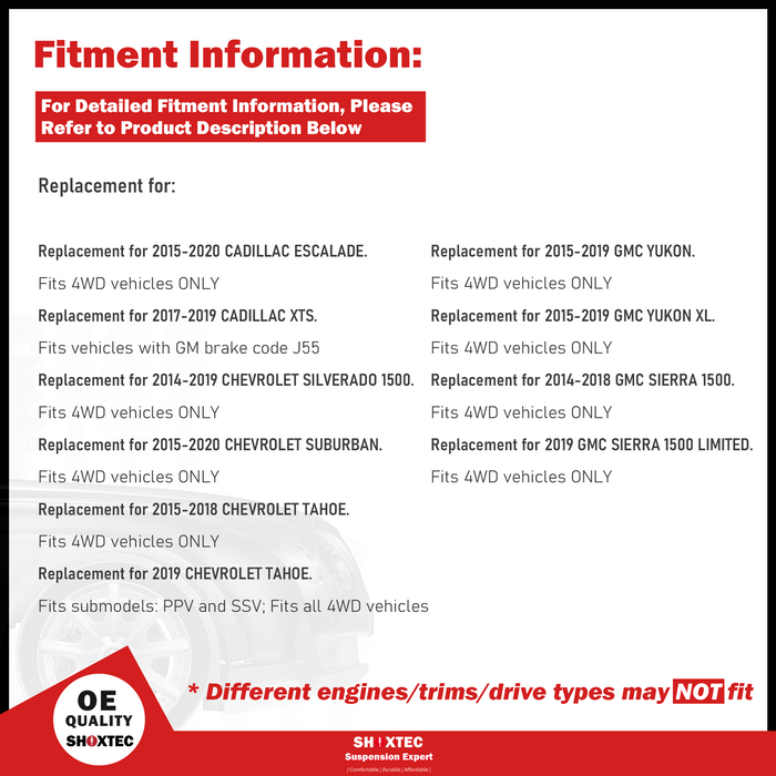 Shoxtec Front Wheel Bearing Hub Assembly Replacement for 15-20 Cadillac Escalade 14-19 Chevrolet Silverado 1500 15-20 Suburban 15-19 Tahoe 14-19 GMC Sierra 1500 15-19 Yukon 4WD only Repl. no 515160