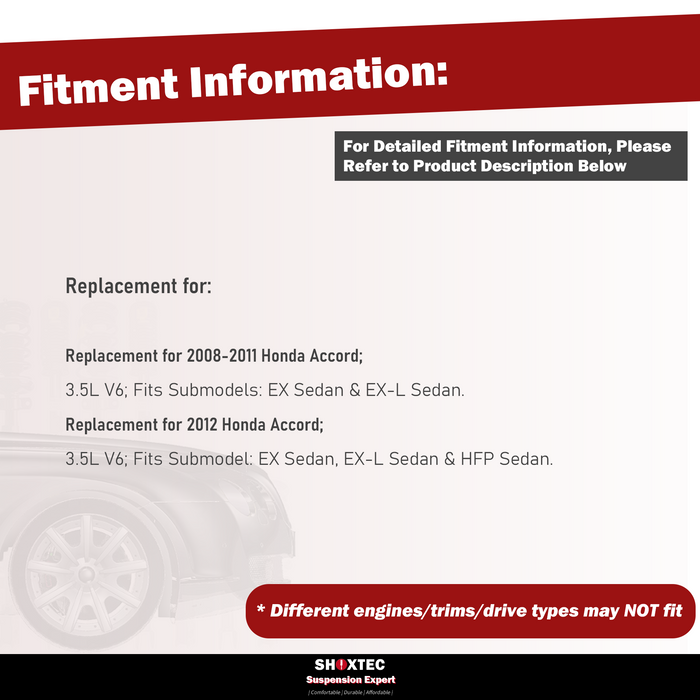Shoxtec 4pc Front Suspension Shock Absorber Kits Replacement for 2008-2012 Honda Accord Includes 2 Complete Struts 2 Lower Ball Joints