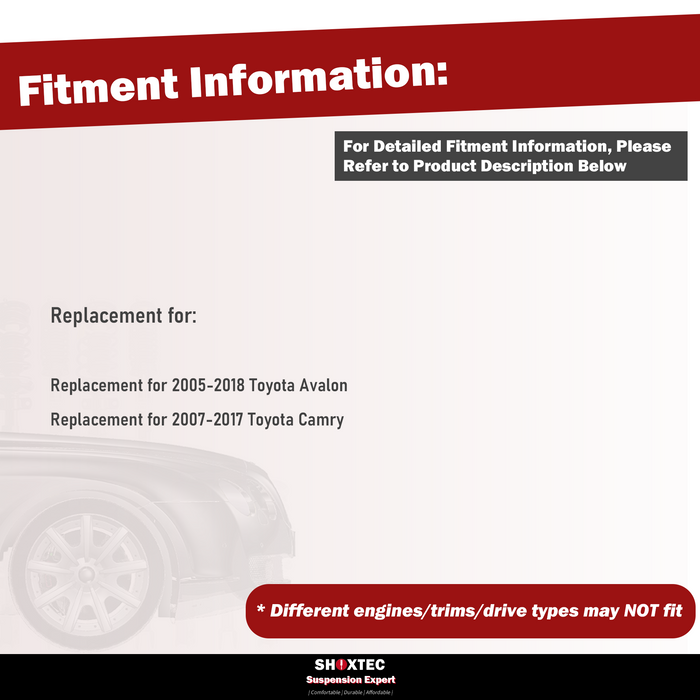 Shoxtec 8pc Suspension Kit Replacement for 2007-2017 Toyota Camry 2005-2018 Toyota Avalon Includes 2 Sway Bars 2 Inner&Outer Tie Rod Ends 2 Control Arms