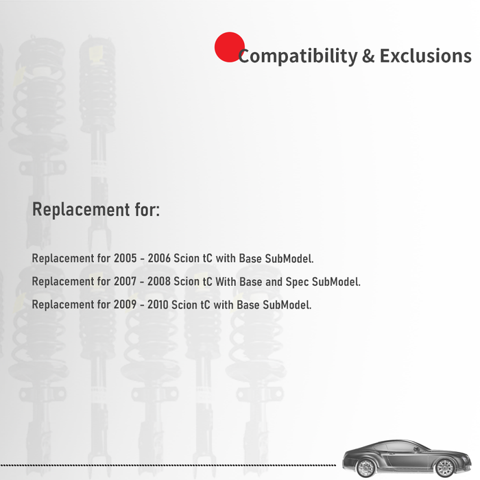 - Replacement for 2007 - 2008 Scion tC With Base and Spec SubModel.
