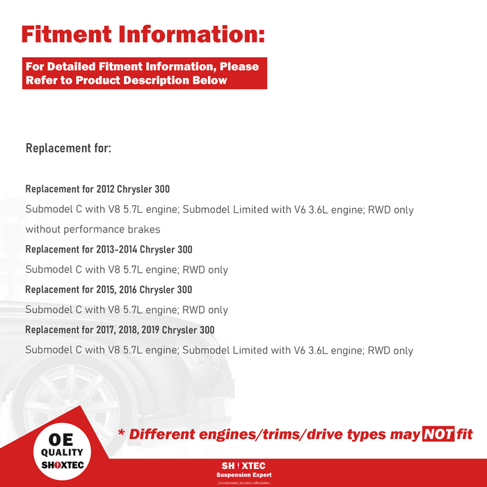 Shoxtec Front Struts Wheel Bearing Hubs Set Replacement for 2012-2019 Chrysler 300 RWD; Submodel C with V8 5.7L engine; Submodel Limited with V6 3.6L engine Repl Part No. 672665 513325